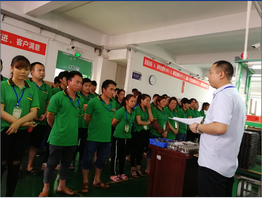 车间内讲解消防操作,负责人成主管耐心的为员工讲解各种消防基本常识,员工神情都比较严肃