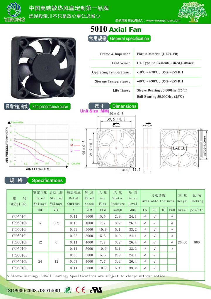 材料:扇叶及扇框 PBT(94V-0)